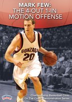 with Mark Few, Gonzaga University Head Coach, 10X West Coast Conference Champions Join Mark Few as he leads you through the offensive scheme that the Bulldogs used to become the nation's fifth highest field-goal percentage team and the third best scoring margin team in 2009. Beginning with an overview of his offensive philosophy, Few gives you an inside look into the strategy that produced the nation's leading scorer, Adam Morrison, in 2006. Moving into the basic fundamentals of the 4-out 1-in Motion Offense, Few emphasizes great spacing and being able to read the defense. Building off the basic formation, Few demonstrates six sets that allow you to get different looks for you players. Few shows a number of screens to get players open and create scoring opportunities, especially using the pick-and-roll. With these concepts and plays you can open up the floor and gain advantages on the offensive end. Create great opportunities for your team to score with Few's strategies and insights. 73 minutes. 2009. Produced at the Spring 2009 Myrtle Beach, SC Clinic