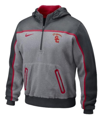 Enjoy cheering for your favorite team all season long in this USC Nike Basketball 2010 Practice Hoody. This hoody is a heavyweight fleece with a large front pouch pocket with integrated music-enabled pocket in seam. The teams logo is embroidered at left chest with embroidered swoosh design trademark at right chest. Elite marks embroidered at lower left cuff where applicable. 80% cotton, 20% polyester